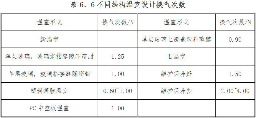 N——溫室與外界的空氣交換率,亦稱換氣次數(shù),以每小時的完全換氣次數(shù)為單位;