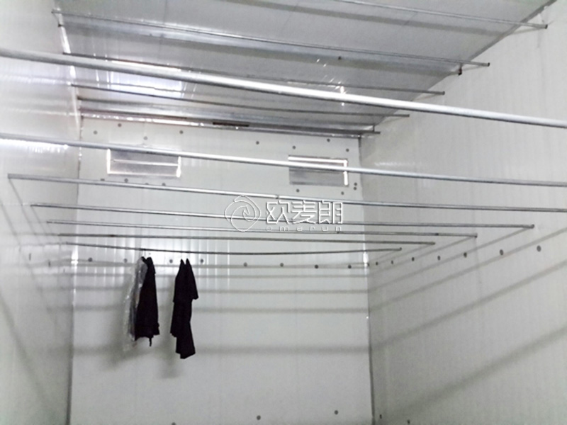 由10CM厚度保溫板材組成密閉房間,熱泵主機(jī)吸收環(huán)境當(dāng)中熱能,傳導(dǎo)到密閉保溫房內(nèi),通過烘干房內(nèi)多臺獨立軸流風(fēng)機(jī)形成360度閉式循環(huán)風(fēng),持續(xù)吹干烘干房內(nèi)衣服。