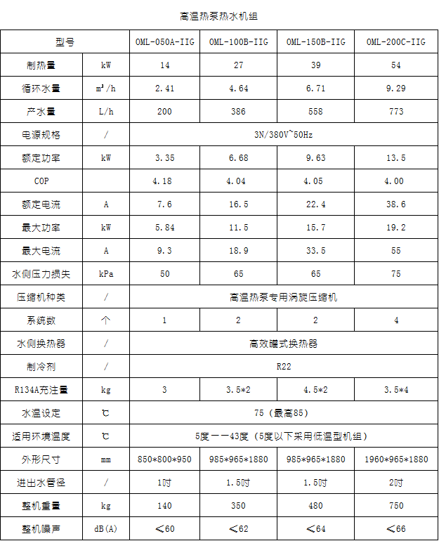 采用卡諾循環(huán)原理,電能驅(qū)動(dòng),以制冷劑為吸熱體,從空氣中吸收熱量制取熱水。采用進(jìn)口品牌壓縮機(jī),引進(jìn)美國(guó)第五代雙螺旋殼管式熱交換器,吸收環(huán)境中的熱量,水電分離,。熱泵定位:低溫環(huán)境熱泵(北方)、常規(guī)熱泵、中溫?zé)岜?、高溫?zé)岜?。目前市?chǎng)上80%的熱泵都是常規(guī)熱泵,出熱水溫度55度,宿舍樓生活用熱水安裝較普遍;中溫?zé)岜媒鼛啄晖茝V多用于工業(yè)熱水,出熱水溫度不高于80度,這兩款基本滿足取暖、烘干、洗滌、醫(yī)藥、化工、布染固色、農(nóng)業(yè)、澡堂、實(shí)驗(yàn)室、恒溫室,且投資性?xún)r(jià)比高,用戶(hù)容易接受。生產(chǎn)設(shè)計(jì)工藝:除了常規(guī)和中溫?zé)岜糜靡患?jí)壓縮機(jī)工作原理,低溫和高溫的熱泵必須采用二級(jí)變頻壓縮機(jī)、熱能回收、壓縮機(jī)機(jī)械能轉(zhuǎn)換等工作原理。常規(guī)和中溫?zé)岜靡揽靠諝庵袩崮艿闹茻?。而低溫和高溫?zé)岜檬且揽靠諝饽苤茻?0%,壓縮機(jī)機(jī)械能轉(zhuǎn)換熱能10%,熱能回收30%.所以二級(jí)高溫?zé)岜檬芸諝饽苡绊懖幌褚患?jí)壓縮機(jī)動(dòng)力系統(tǒng)那么大。