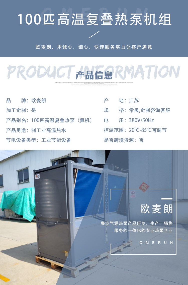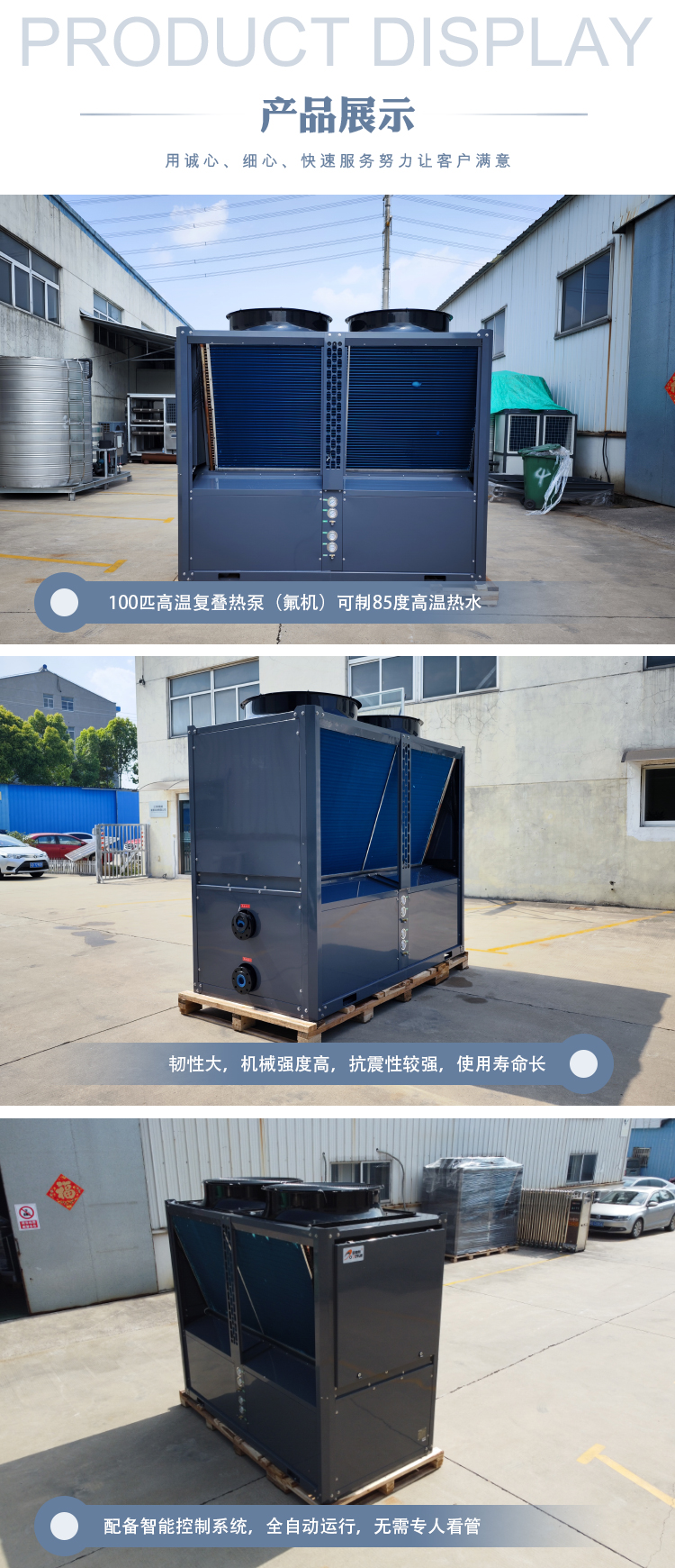 簡介:100匹高溫復(fù)疊熱泵,可制85℃高溫?zé)崴?,可用于電鍍廠、印染廠、化工、醫(yī)藥、金屬前處理、屠宰場等企業(yè)高溫用水需求!