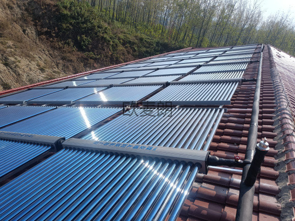 項(xiàng)目配置:28組太陽能真空管集熱器+2臺(tái)歐麥朗空氣能熱泵熱水機(jī)組
