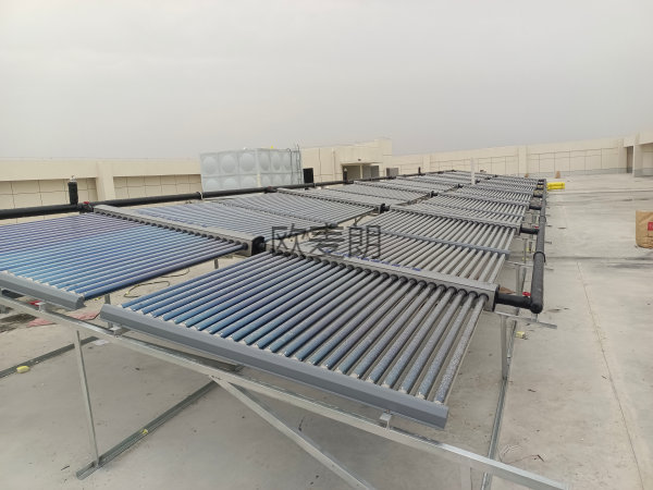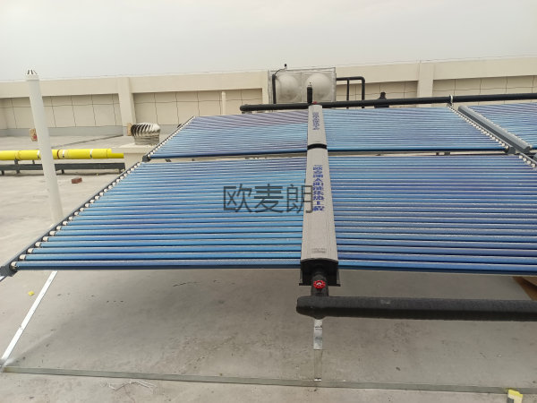 項(xiàng)目配置:一臺(tái)歐麥朗空氣能熱泵熱水機(jī)組+一個(gè)方形保溫水箱+14組歐麥朗真空管太陽能集熱器