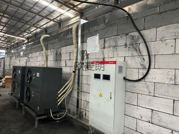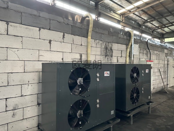 項(xiàng)目配置:135平烘房兩個(gè),每間烘房配置兩臺歐麥朗烘干熱泵機(jī)組