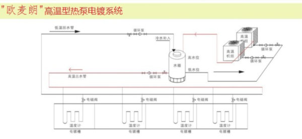 該工廠主要生產(chǎn)產(chǎn)品為SMT貼片電阻器,包括芯片電阻、排列電阻、網(wǎng)絡(luò)電阻。該公司有幾條電鍍產(chǎn)線,電鍍槽內(nèi)槽液需要高溫熱水,目前該產(chǎn)線槽液加熱的熱源采用的是常規(guī)的電加熱管,該能源存在能耗高及一定的安全隱患,故需要對熱源進行改造,采用“歐麥朗”公司自主研發(fā)的電鍍高溫空氣能熱泵進行替代。