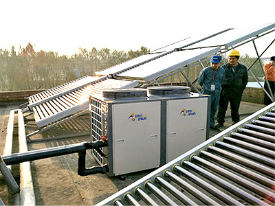 工程設(shè)備:太陽(yáng)能管式集熱器、空氣能熱泵熱水機(jī)組