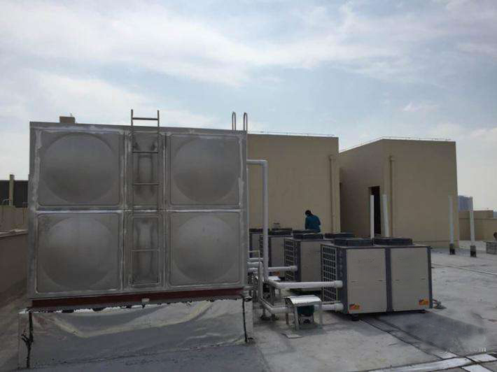 熱水系統(tǒng)配置:高溫空氣能熱泵機組+方形保溫水箱