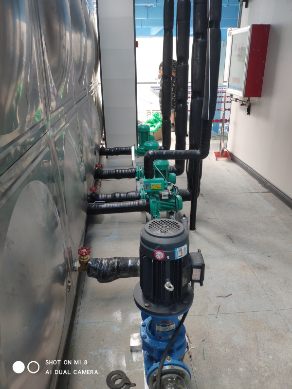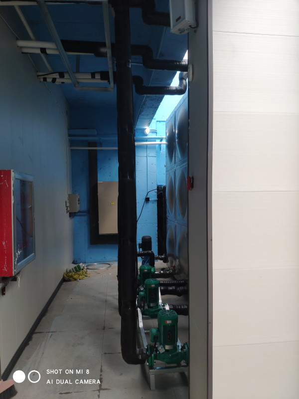 設備配置:現(xiàn)場配了一個30立方的儲熱水箱和3臺歐麥朗空氣能熱泵機組進行循環(huán)加熱,對室內泳池進行檢測控溫;淋浴熱水采用增壓泵增壓供水,并設置了循環(huán)式,以保證24小時泳池熱水溫度恒定,即開即熱。