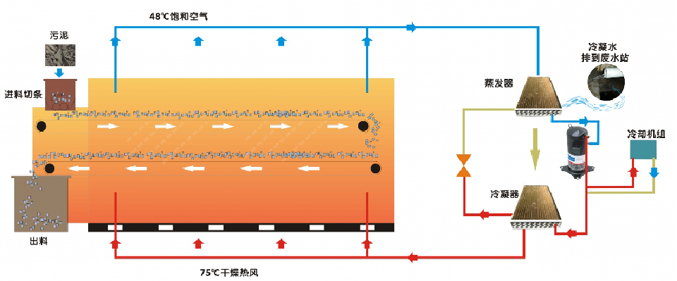 空氣能熱泵污泥烘干機(高溫烘干機(整體)),采用的熱泵除濕技術(shù),60%以上。傳統(tǒng)污泥干化設(shè)備需要消耗電量、冷卻水、藥劑等,能耗過高,后期維護成大;而空氣能熱泵污泥烘干機采用低谷錯峰用電模式,可60%以上。