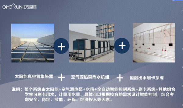 江蘇歐麥朗公司是空氣能熱泵、太陽能系列產(chǎn)品生產(chǎn)廠家。旗下設(shè)有安裝工程公司是專門承接空氣能、太陽能熱水工程、商用冷暖熱泵空調(diào)工程、熱泵烘干工程、余熱回收系統(tǒng)工程等。為客戶提供“太陽能+”“空氣能+”多能源組合的解決方案,為客戶節(jié)約、降耗,余熱回收,能源再利用。承接學(xué)校熱水工程改造和新建項(xiàng)目十多年,有著實(shí)戰(zhàn)的經(jīng)驗(yàn)。