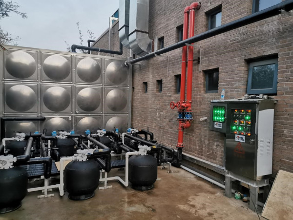 熱水系統(tǒng)主要為室外露天溫泉池以及室內(nèi)洗浴區(qū)熱水的保障,保持室外溫泉池的恒溫,并每個池水都配置一套過濾凈化的砂缸系統(tǒng),在換熱的同時保障每個池內(nèi)的水質(zhì)潔凈。設(shè)備組成為3臺熱泵熱水機(jī)組一個50T保溫水箱,配套11套過濾砂缸系統(tǒng)以及11套高效換熱器結(jié)合定制的恒溫控制系統(tǒng)。確保每個溫泉池處于一個相對合適的溫度環(huán)境。