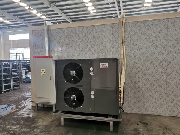 項目配置:兩個50平烘干房,每個烘房可以烘干10立方物料,每個烘房配備一臺歐麥朗12匹烘干熱泵機組