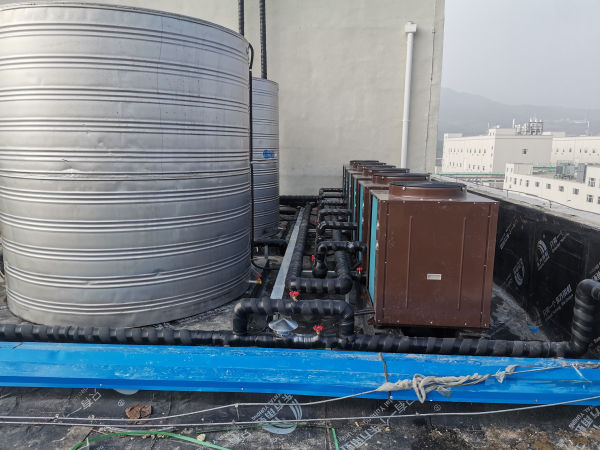 項目配置:采用30組太陽能集熱器和6臺超低溫空氣能熱泵機組