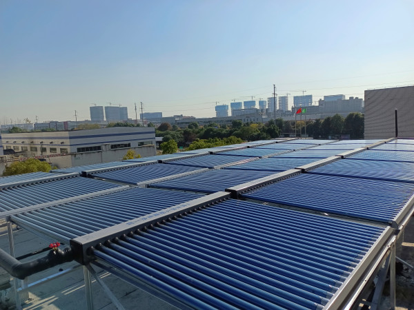 為響應(yīng)國(guó)家節(jié)能環(huán)保的號(hào)召,企業(yè)對(duì)員工生活熱水系統(tǒng)進(jìn)行了改造。員工宿舍每天需要大概7噸熱水。改造前公司采用高溫蒸汽加熱熱水,這樣每天需要專人去看管,使用費(fèi)用很高,而且使用高溫蒸汽存在一定的安全隱患。改造后,系統(tǒng)采用12組58*1800-50管太陽能集熱器,一臺(tái)空氣源熱泵,利用原有的保溫水箱來滿足熱水需求。晴好天氣時(shí),太陽能吸收的熱量對(duì)水箱的水直接加熱,以滿足使用需求,在陰雨天和雨雪天氣,太陽能不能滿足使用需求時(shí),系統(tǒng)自動(dòng)啟動(dòng)空氣源對(duì)水箱進(jìn)行二次加熱,以滿足使用需求,整個(gè)系統(tǒng)全自動(dòng)運(yùn)行,無需專人看管,而且極大的降低使用成本。