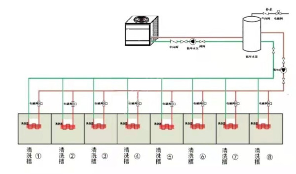第一種直接加熱:利用空氣能加熱的電鍍槽系統(tǒng),如下圖所示: