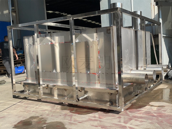 綜上,可以選用歐麥朗高效廢氣余熱回收器,這套設(shè)備是用于能量回收的一種回收裝置。兩股逆向流動的氣流,通過超薄傳熱板片隔絕,由于存在溫度差而產(chǎn)生熱量交換,從而實現(xiàn)能量回收。采用超薄元件做為傳熱導(dǎo)體,采用強化沖壓咬邊技術(shù)加工而成,具有強度高、密封好(漏風(fēng)率低于1%)、傳熱快、回收效率高(回收率達70%)、易于維護、使用壽命長等優(yōu)勢,同時使用自然環(huán)境溫度空氣進行換熱,無需額外能量消耗。此外,單體可任意模塊化排列組合,適應(yīng)各種換熱工況。