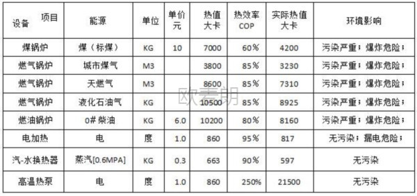 9、各種熱源基本參數(shù)比較: