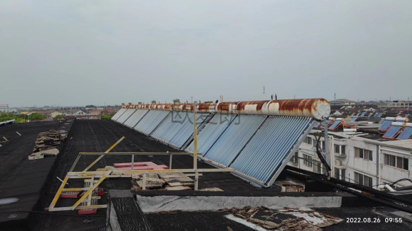 改造前是采用單機(jī)太陽(yáng)能+電加熱輔助供熱水,能耗高,危險(xiǎn)性大,易損壞!