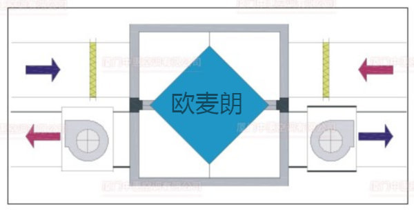 新風(fēng)和排風(fēng)同時(shí)進(jìn)入該設(shè)備,排風(fēng)通過導(dǎo)熱優(yōu)質(zhì)的換熱片將能量傳遞給新風(fēng),從而大大減少排氣能量的流失。