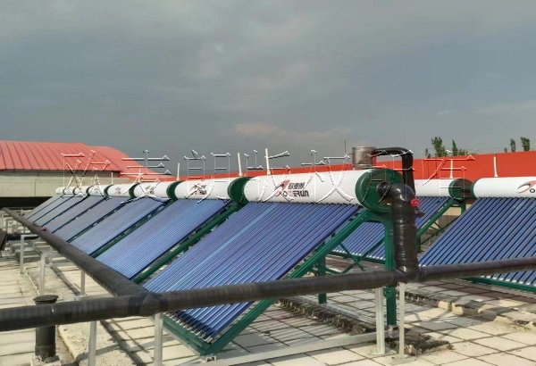 無動力太陽能熱水系統(tǒng)是一種高效太陽能熱水系統(tǒng),集熱系統(tǒng)由開式儲熱水箱、閉式波紋管換熱器、真空管等組成,承壓式熱泵熱水系統(tǒng)由熱泵主機(jī)、電加熱水箱和多個儲熱水箱組成。