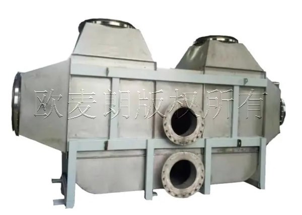 熱焚燒爐處理過(guò)的廢氣溫度仍處于高溫狀態(tài),含有的余熱資源高,這是因?yàn)閺U氣中VOCs濃度較高時(shí),廢氣氧化后會(huì)產(chǎn)生多余的熱量,從熱氧化室引出850℃~1000℃的高溫?zé)煔?,進(jìn)行余熱回收可以采用歐麥朗開(kāi)發(fā)的HEU高效余熱回收器,它是一種常用于中高溫廢氣余熱回收使用的,經(jīng)常安裝在鍋爐煙口和煙道中,將煙氣余熱回收后的熱量來(lái)加熱空氣,或是回收后的熱風(fēng)用于助燃烘干物料。