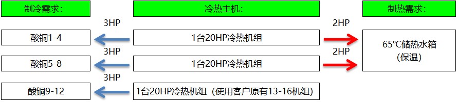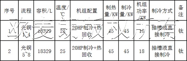 注:1、增加兩臺冷熱機組直接對應酸銅1-4、5-8槽直接抽槽液制冷;