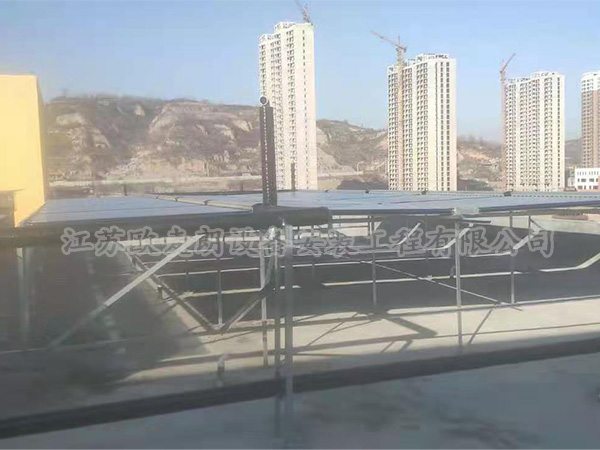 主機(jī)配置:36組太陽能集熱器+18噸水箱+燃?xì)忮仩t輔助熱源
